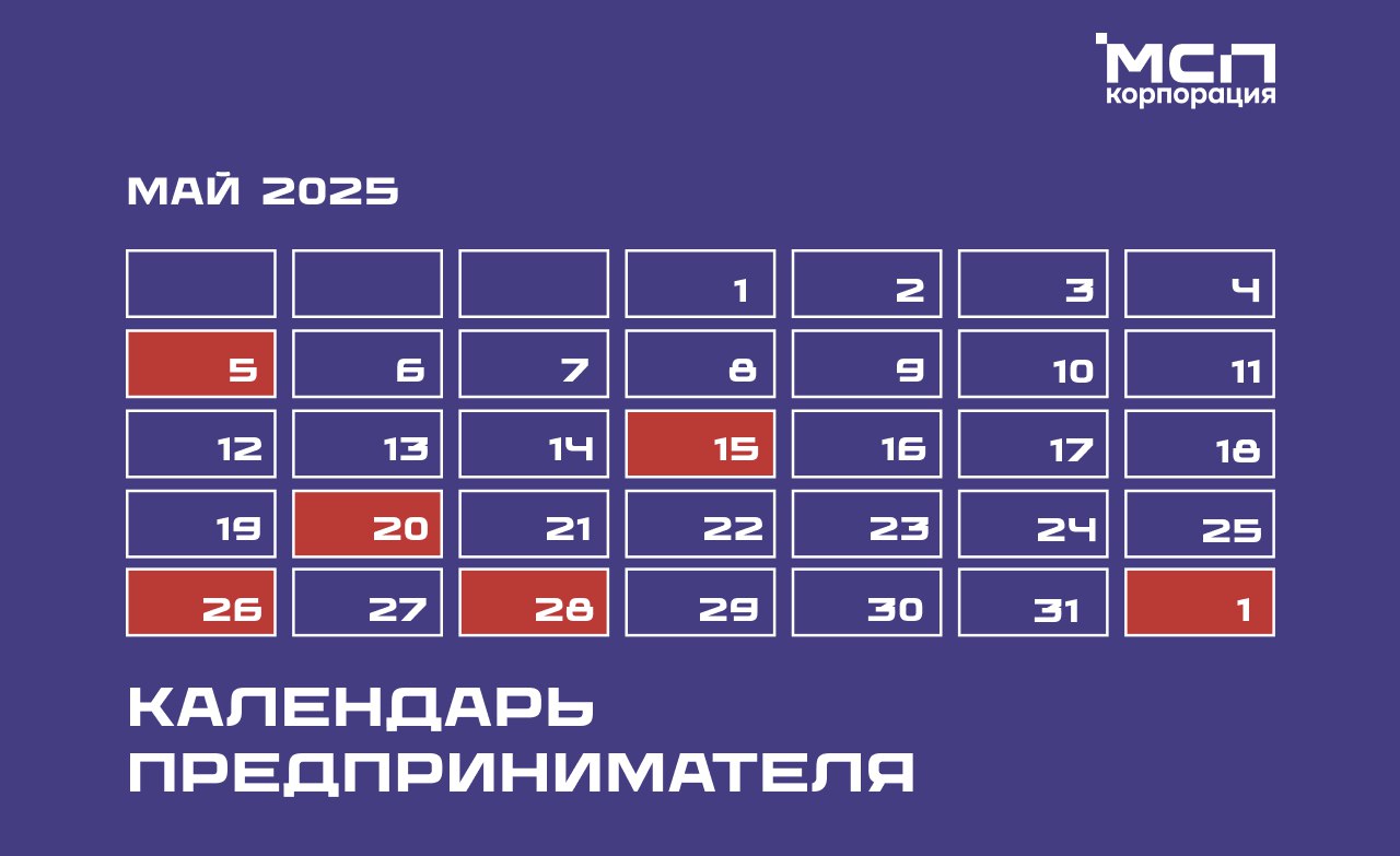 Календарь предпринимателя на май 2025 года